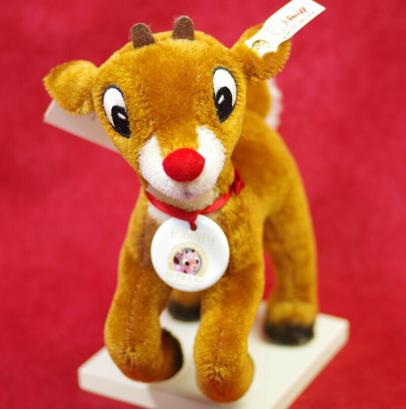 シュタイフ(Steiff)社の2014年の新作テディベア 1964年12月6日「ルドルフ 赤鼻のトナカイ」がNBCで初めて放映され、それ以来、歴史上最も長いホリデープログラムとして親しまれています 放送から半世紀、50周年を迎えてシュタイフは特別なルドルフ発表しました 彼のトレードマークの赤鼻は真紅のベルベット製なんですよ そして首元にはオフィシャルの記念日のロゴで飾られたメダルを下げていますよ是非お見逃しなく ■素材:モヘア(アンゴラ山羊の純毛) ■耳のボタン:金メッキボタン ■サイズ:25cm ■限定:1500体 ■2014年 ■ドイツ製